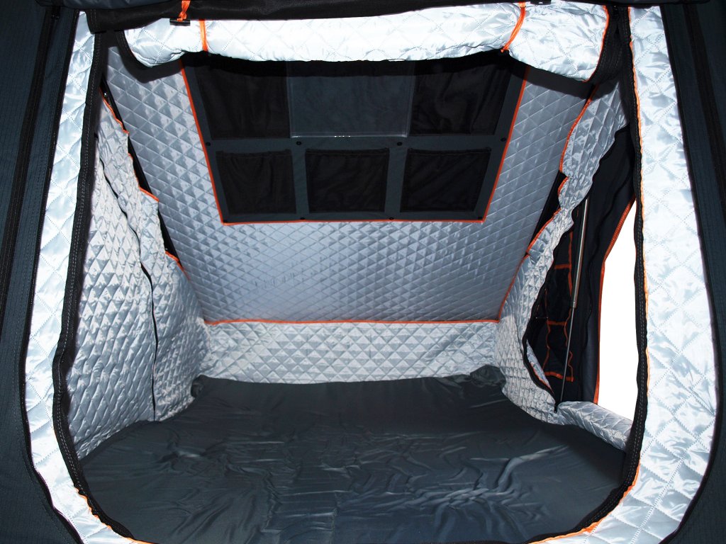 Vnútri sa nachádza komfortný penový matrac s rozmermi 200 × 135 × 5 cm so snímateľným poťahom, ktorú je možné ľahko vybrať a vyčistiť. Samozrejmosťou je antikondenzačná podložka a vnútorná izolačná vrstva, ktoré pomáhajú udržať suché a príjemné prostredie aj pri chladnejších nociach.