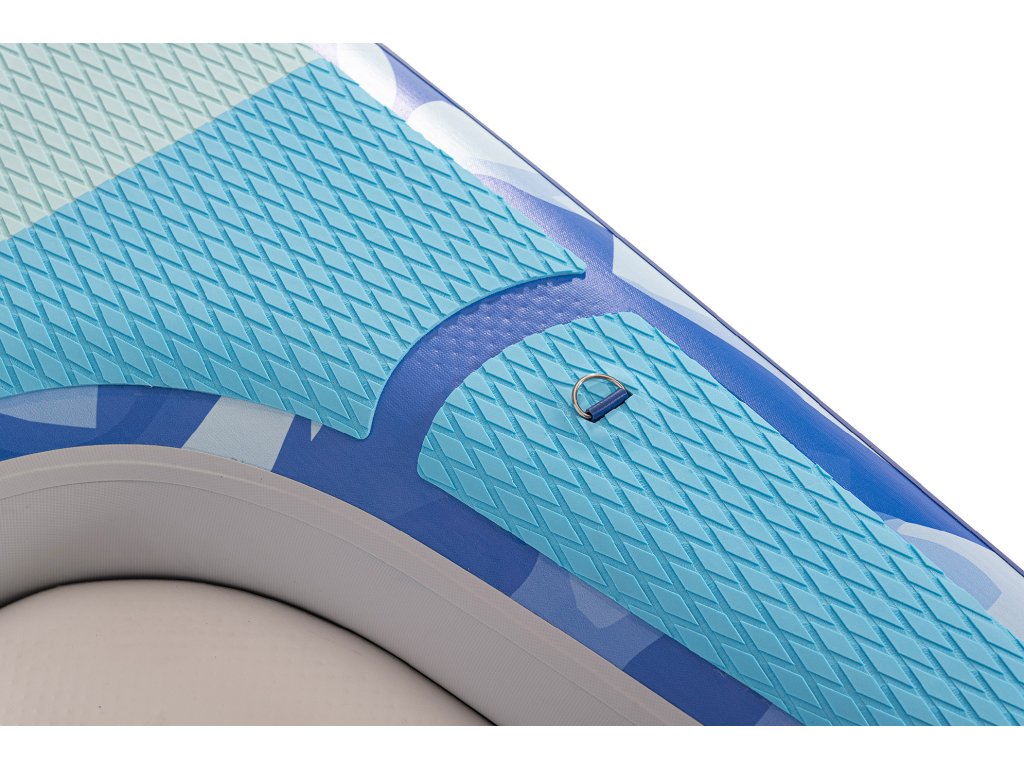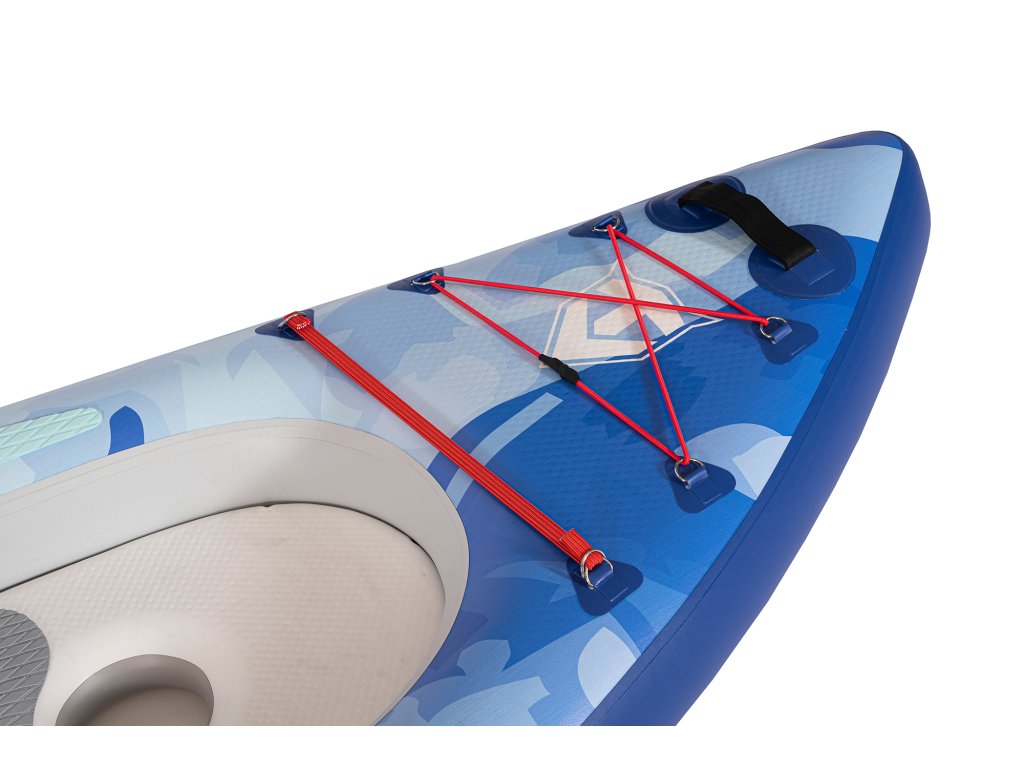 Kajak zaujme výrazným vodným motívom v odtieňoch modrej, ktorý pripomína pohyb vĺn a dokonale ladí s vodným prostredím. Je vybavený integrovaným sedacím priestorom určeným pre dvoch jazdcov. Spodná strana obsahuje dve plutvy, ktoré zaisťujú lepšiu stabilitu a jednoduchšie ovládanie počas jazdy.