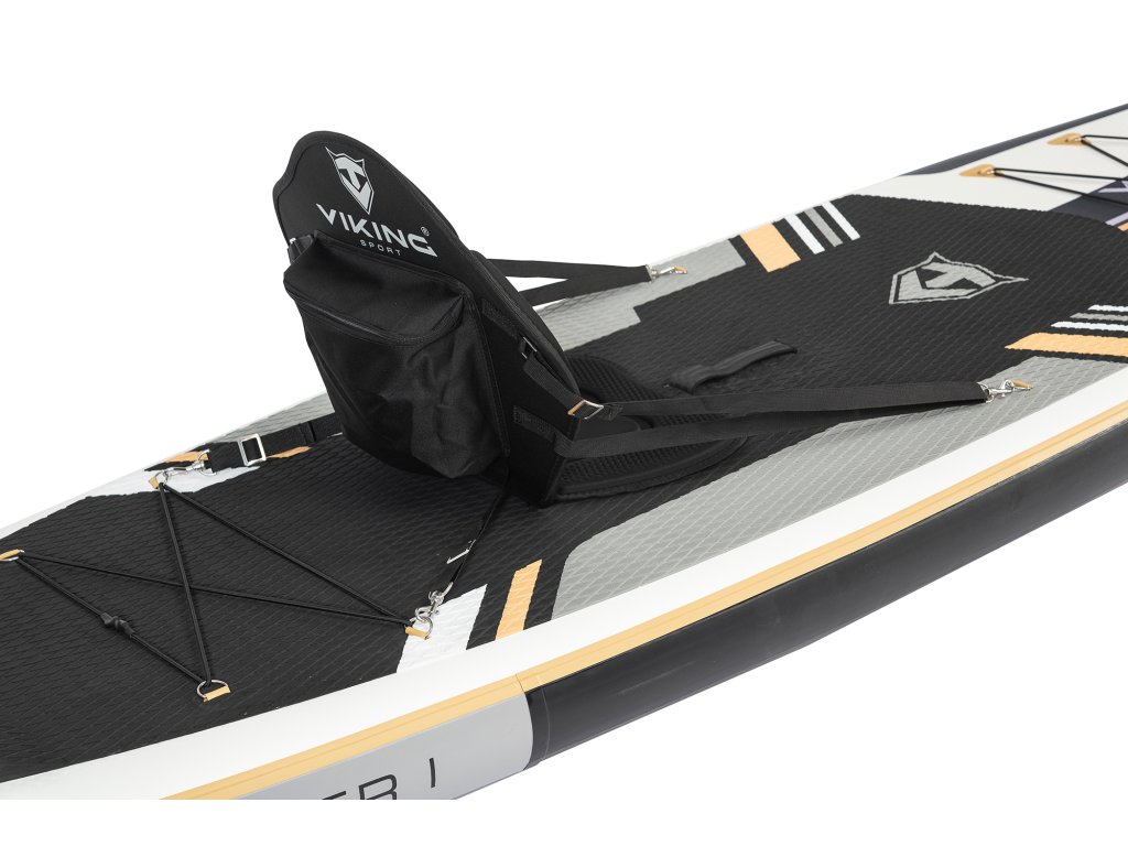 Paddleboard Viking Ice Raider Aj poteší bohatým nadštandardným príslušenstvom, vďaka ktorému môžete vyraziť na vodu hneď po rozbalení. V balení nájdete odolný batoh, dvojčinnú pumpu s manometrom, trojdielne pádlo, členkový remienok a náhradnú plutvu. Nechýba ani pohodlné sedadlo pre jazdu v sede, stojan na telefón a opravná sada. Všetko je navrhnuté pre maximálny komfort a samostatnosť na cestách.